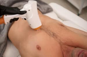 Because men typically treat large areas like the back, the speed of the laser is very important. The best lasers for hair removal are dual-wavelength lasers which include both Alexandrite AND Nd-Yag wavelengths. These lasers can be used to treat men with any skin type: Alexandrite for lighter skin and Nd-Yag for darker skin. Some lasers have technology that allows them to glide over the skin very quickly– making treatments of the back take mere minutes. Always ask what kind of laser is being used. At Glow, we like the Clarity II, the fastest in the industry. But there are many lasers that work well.