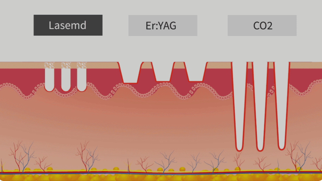 Resurfacing the skin with fractional lasers has become the gold standard. Laser light can be used to precisely remove a percentage of the skin surface area in a way that allows fast healing in a safe way. These lasers are known for “fractional” resurfacing by eliminating small columns of the skin surface while leaving the adjacent skin intact. The precision of these lasers allows them to remove the full thickness of the epidermis (along with the pigment and wrinkles in them) leaving enough adjacent skin intact to heal quickly. This way anywhere from 20 to 40% of the skin surface can be treated in each session.